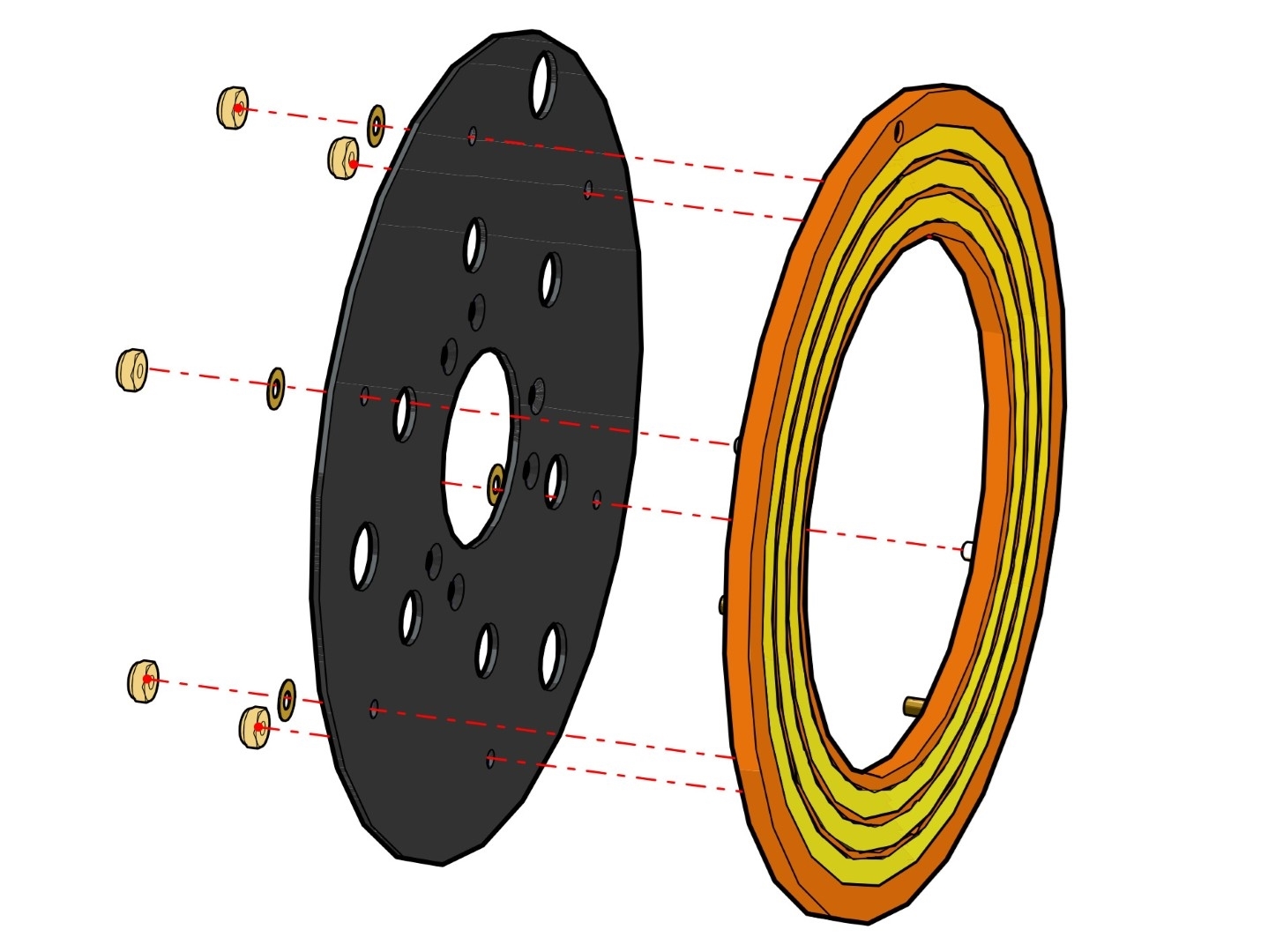 Normally, the slipring is mounted to the spinner backplate, but when a spacer, adapter, or extension assembly is used, it may require fitting to the mount kit assembly instead to contact the sensor-brush block. In these cases, the slipring is fitted to a dedicated mount plate (supplied with the mount kit assembly). Which installers must attach to the mount kit assembly before installing the propeller hub.