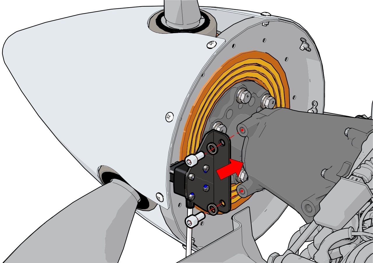 It is recommended that installers mount the hub to the engine flange and attach the sensor-brush block to the Rotax mounting bracket before proceeding.